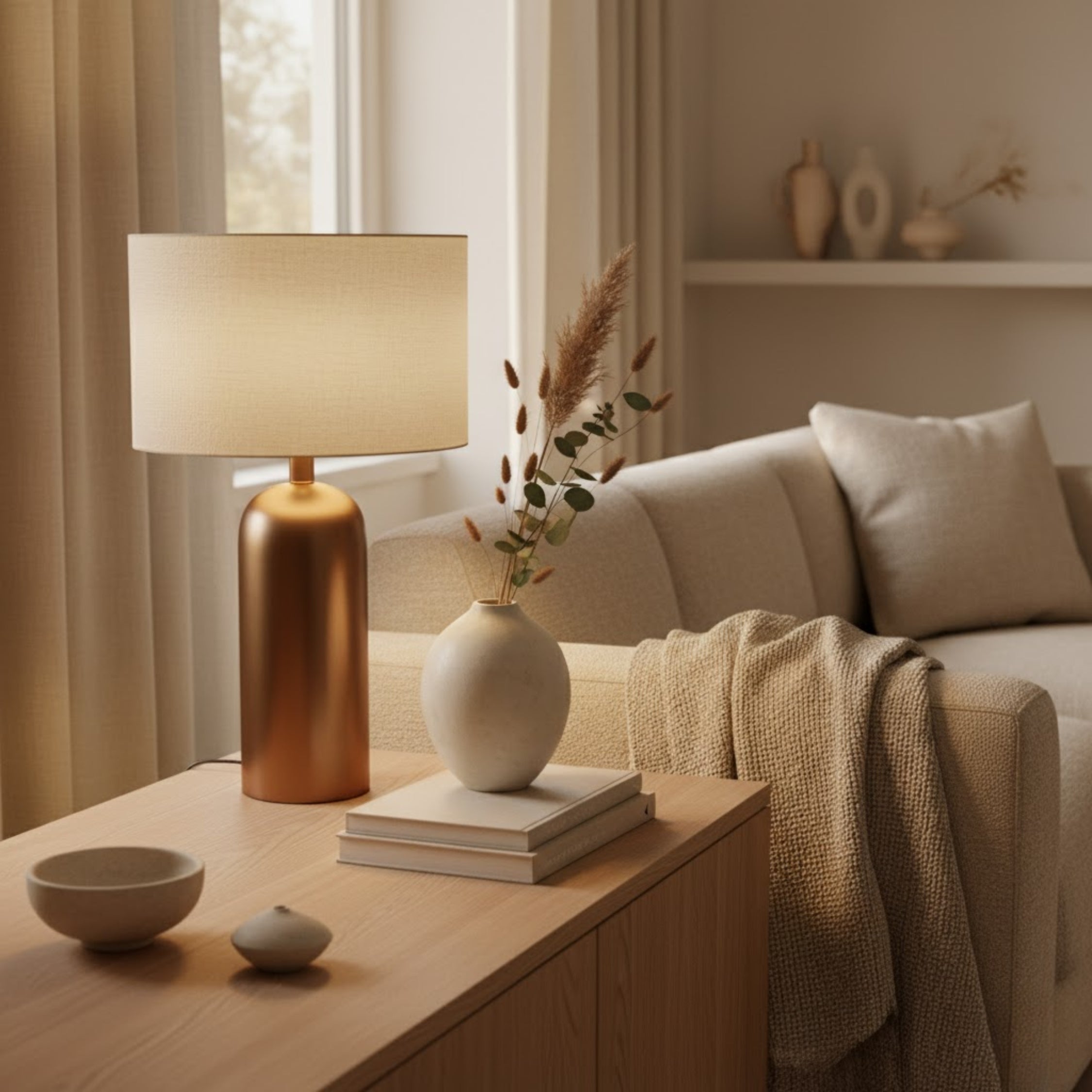 Gerilltes Holz, matte Keramik und weiche Textilien erzeugen Tiefe – selbst kleinste Akzente wirken durchdacht.